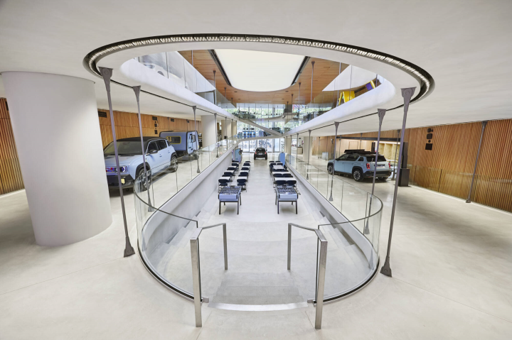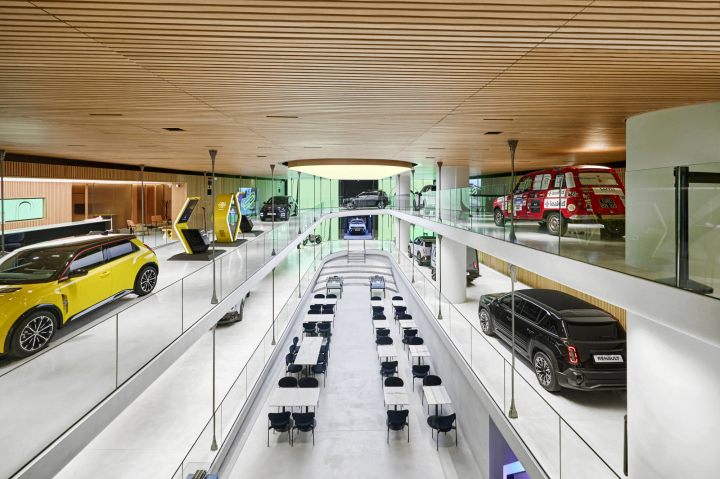 Franklin Azzi tahtis algusest peale rajada le défilé Renault ® carwalk’i keskele autotee, et kasutada ära hoone ainulaadset ruumilist potentsiaali. Kõrgeid ja voolavaid ruume esile tõstes lõi Azzi puhta ja lihtsustatud interjööri, tuues esile arhitektuuri suurepärased detailid. Ammutades inspiratsiooni muuseumidest ja kunstikeskustest, asus ta looma ainulaadse arhitektuuristiiliga hoonet. Ta leidis inspiratsiooni ka teiste arhitektide kavanditest, kes on jätnud oma jälje autotööstuse ajalukku.